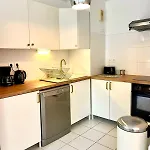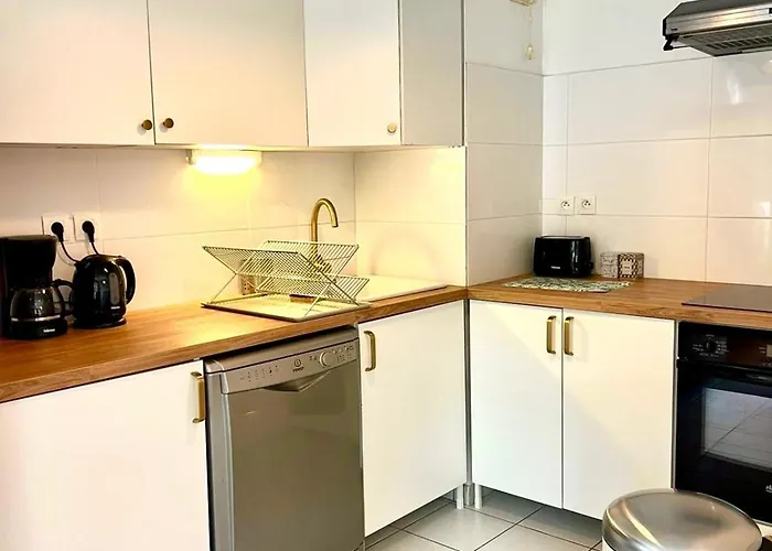 - ❓¿Hay una cocina disponible en el apartamento para uso de los huéspedes?Sí, el apartamento está equipado con una cocina bien equipada y ofrece también un hervidor eléctrico, una nevera y menaje de cocina.